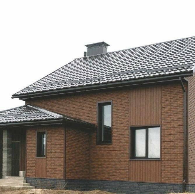 Фото домов с фасадными панелями Stone House S-Lock Клинкер Балтик