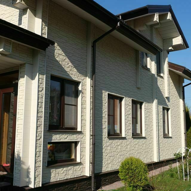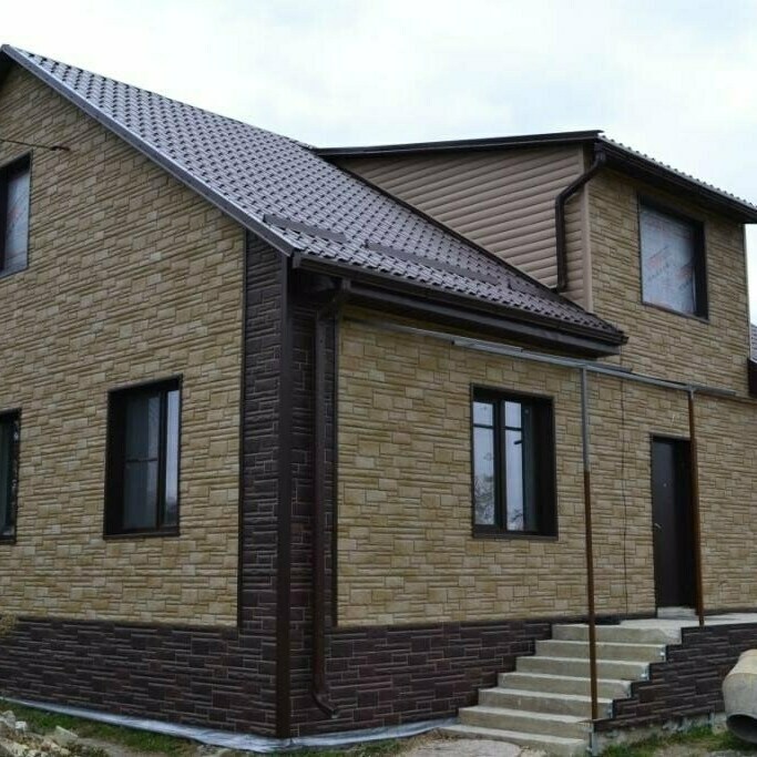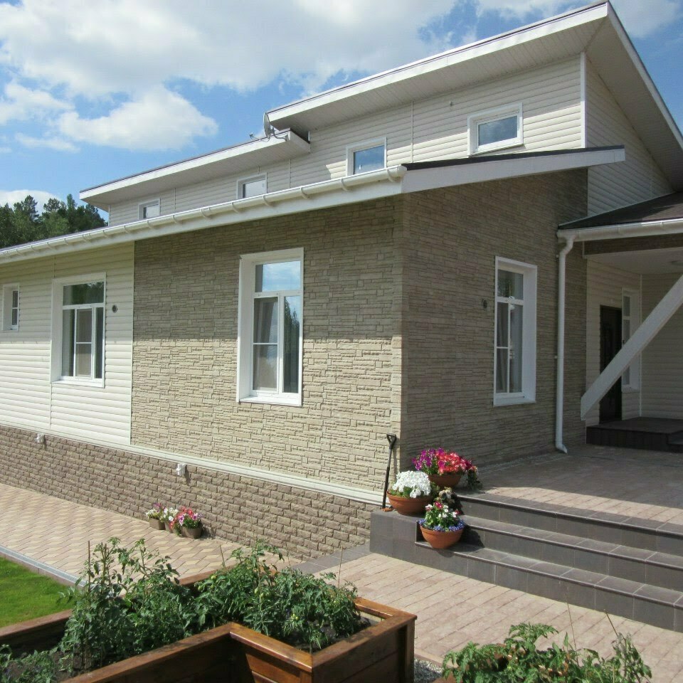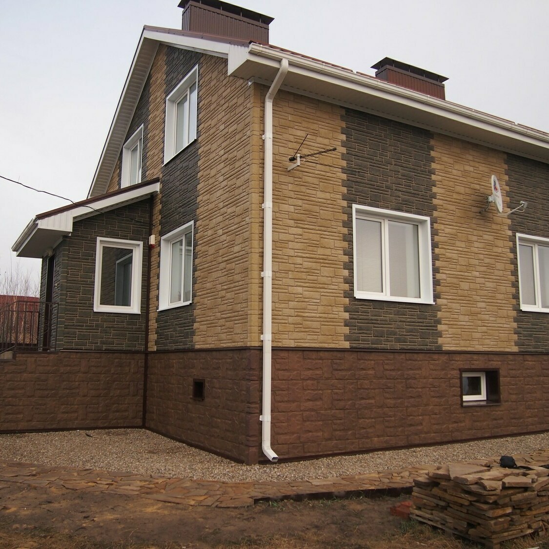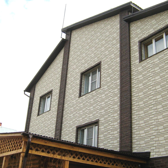 Примеры облицовки дома фасадными панелями под камень, под кирпич, под гранит и под другие природные материалы